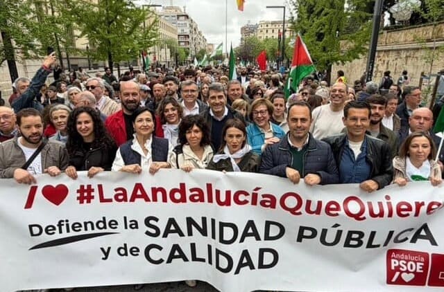 El secretario general del PSOE de Granada, Pedro Fernández, cuyo partido ha participado en esta manifestación, ha reafirmado el compromiso de su partido con un sistema sanitario «digno, universal y de calidad, frente al destrozo al que lo está sometiendo» el Gobierno de Juanma Moreno.