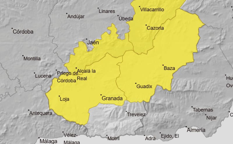 Alerta amarilla en la cuenca del Genil, Guadix y Baza por lluvias de hasta 15 litros por metro cuadrado. Imagen: AEMET