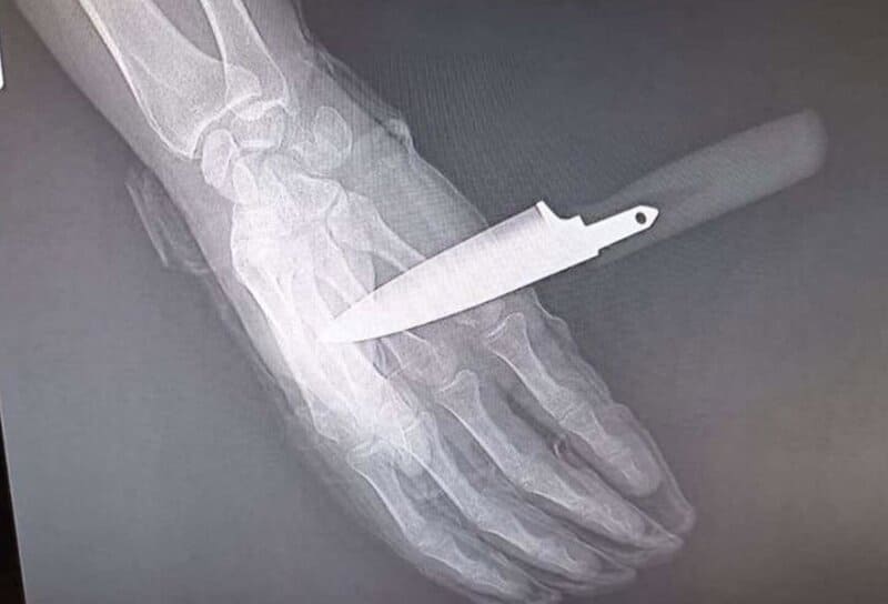 Acto seguido, el atacante intentó asestar una segunda puñalada que el policía logró repeler parcialmente, aunque el arma blanca llegó a atravesarle la mano.