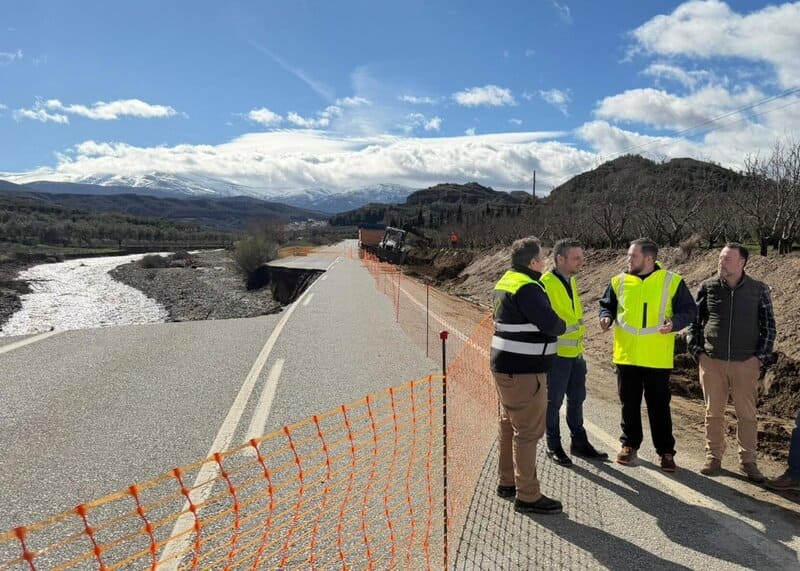 El diputado provincial de Obras Públicas y Vivienda de Granada, José Ramón Jiménez, y el diputado de Emergencias, Eduardo Martos, han visitado el inicio de las obras de un paso alternativo paralelo a la carretera GR-4105, a la altura de Beas de Guadix, entre Purullena y Lugros, tras el derrumbe de un tramo de la vía provocado por el desbordamiento del río Alhama. En un plazo de 48 horas, se abrirá para facilitar el tránsito a la zona, según ha informado la institución provincial en una nota de prensa recogida por Europa Press.