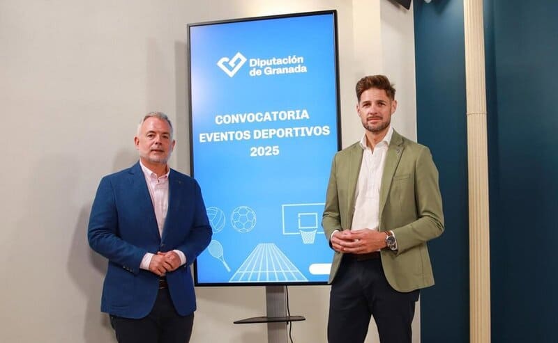 El presidente en funciones de la Diputación de Granada, Nicolás Navarro, junto al diputado de Deportes e Instalaciones Deportivas, Eric Escobedo, ha presentado una nueva convocatoria de ayudas destinadas a organizadores de eventos deportivos en la provincia. Esta es la segunda vez que se pone en marcha esta línea de ayudas, que cuenta con un presupuesto total de 200.000 euros.