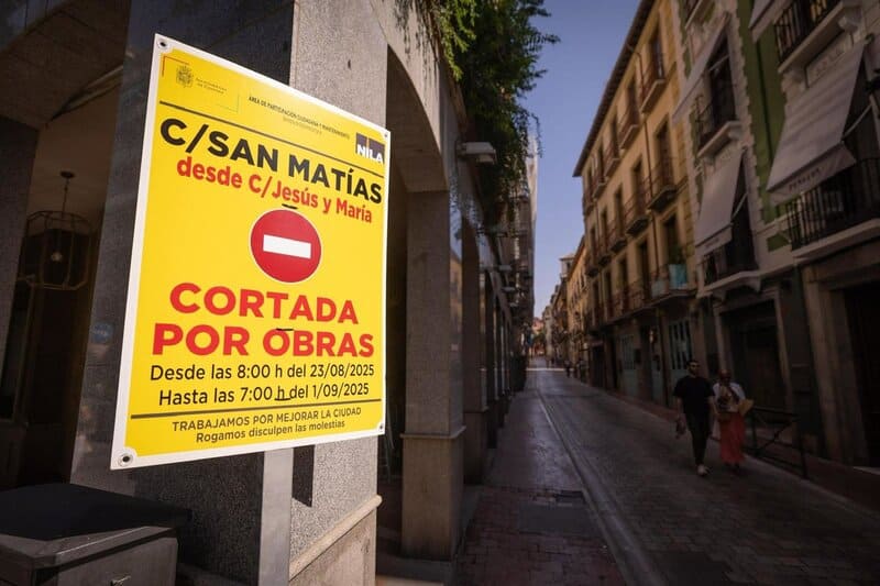 El Ayuntamiento de Granada ha comenzado los trabajos de mejora del mantenimiento del pavimento en la calle San Matías, que permanecerá cortada al tráfico rodado a partir de las 08,00 horas de este sábado y hasta las 07,00 horas de este lunes, 1 de septiembre, para acometer su renovación y mejorar la accesibilidad y el tránsito por la vía.