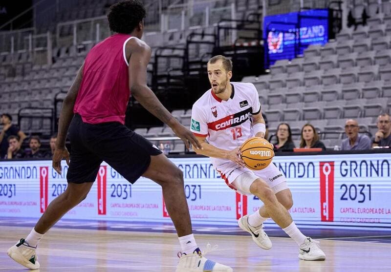 Coviran Granada: Micah Speight 14, Matt Thomas 25, Travis Munnings 9, Luka Bozic 7 y Zach Hankins 10 – quinteto titular – Jonathan Rousselle 8, Babatunde Olumuyiwa 4, Iván Aurrecoechea 7, Edu Durán 11, Jovan Kljajic 17 y Khalifa Gaye 0.