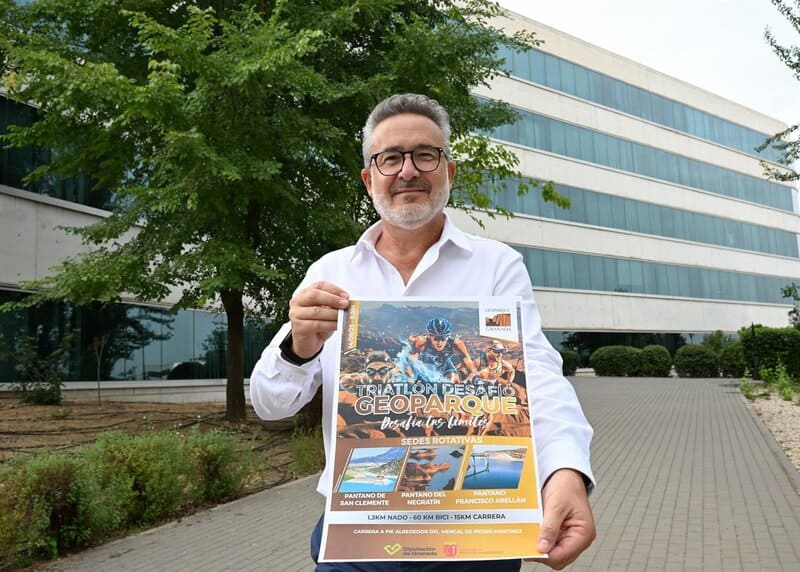 El diputado provincial de Fondos Europeos, Desarrollo, Industria y Empleo en la Diputación de Granada, Antonio Díaz, ha presentado la primera edición del Triatlón Desafío Geoparque de Granada, una prueba que invita a «disfrutar del deporte en plena naturaleza a través de algunos de los paisajes más singulares del mundo». El evento se celebrará el próximo 14 de septiembre en este enclave único de la zona norte de la provincia.