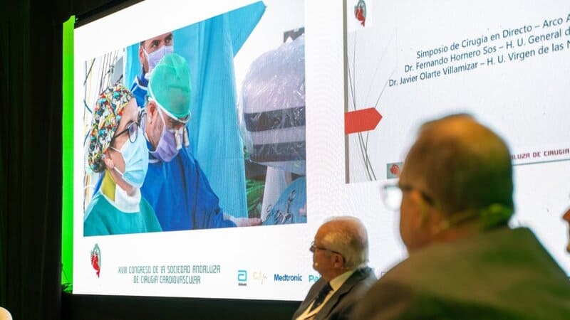 El Hospital Universitario Virgen de las Nieves de Granada ha efectuado dos intervenciones quirúrgicas que se han emitido en directo desde el quirófano híbrido del centro hospitalario granadino a la sede del 18 Congreso Andaluz de Cirugía Cardiovascular, donde más de un centenar de especialistas de alto nivel han podido ver cómo el equipo de cirujanos llevaba a cabo procedimientos de alta complejidad en el abordaje de la aorta.