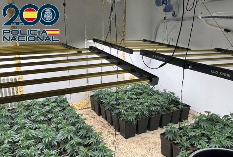 La Policía Nacional ha detenido en Granada a dos varones como presuntos autores de los delitos de tráfico de drogas y defraudación de fluido eléctrico tras localizar una vivienda cerca de la Carretera de la Sierra dedicada en exclusiva a la reproducción de plantas de marihuana, en la que se incautaron cerca de 700 plantas de cannabis sativa.