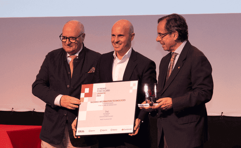 La empresa Nazaríes Intelligenia, especializada en productos de software que ofrece servicios de consultoría, desarrollo, creación y mantenimiento de soluciones tecnológica, ha recibido el Premio Pyme del Año 2025 de Granada, un galardón que conceden el Banco Santander, la Cámara de Comercio de Motril, y la Cámara de Granada, en colaboración con la Cámara de España y el diario IDEAL.