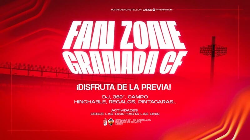 El Granada CF volverá a habilitar una Fan Zone en los alrededores del Estadio Nuevo Los Cármenes en los prolegómenos del partido que enfrentará este domingo, 25 de mayo (18.30 horas) al club rojiblanco contra el Club Deportivo Castellón. Durante la misma, se llevarán a cabo actividades pensadas para toda las familias granadinistas, tanto mayores como pequeños.