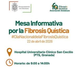 Mesa informativa en Granada de 2025 del Día Nacional de la Fibrosis Quística. Este año estará en el Hospital Clínico San Cecilio de Granada, de 09:00 a 14:00 horas. Imagen: Asociación Andaluza de Fibrosis Quística.