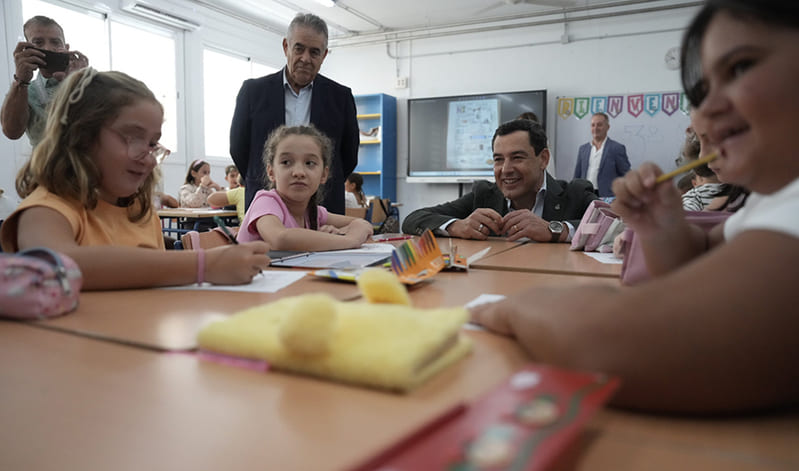 El presidente andaluz ha asegurado, en relación con la educación especial, que ésta cuenta con la plantilla de especialistas más amplia, con hasta un total de 14.000 este curso, un 37% de crecimiento en los últimos siete años. «Cada alumno y cada alumna son únicos y distintos, y todos merecen desarrollar su potencial hasta el límite de sus capacidades. Tenemos la obligación y la determinación de ayudarles a que así sea».