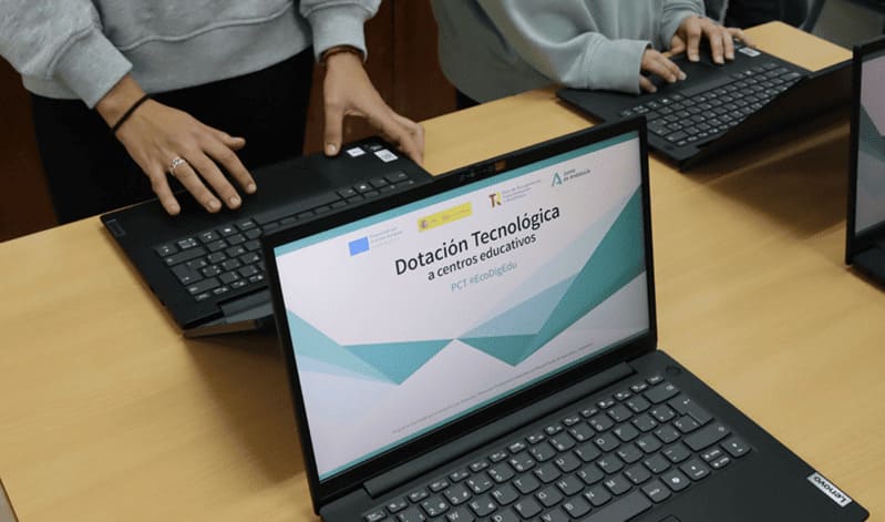 Dentro de la inversión realizada en 2025 en la Comunidad autónoma han destacado los 68,7 millones de euros destinados a equipamiento tecnológico, principalmente a la adquisición, entrega e instalación de dispositivos portátiles y aulas digitales interactivas en el marco del Programa de Cooperación Territorial para la Digitalización del Ecosistema Educativo #EcoDigEdu, que cuenta con financiación de la Unión Europea a través de los fondos Next Generation UE y el Mecanismo de Recuperación y Resiliencia (MRR).