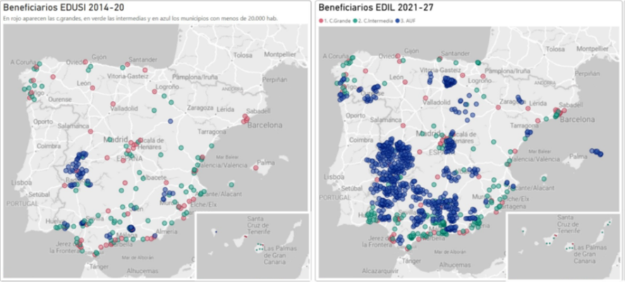 La resolución de la convocatoria del Plan EDIL ha asignado una cifra récord de 1.774 millones de euros de fondos FEDER a 242 proyectos. Esta dotación representa un incremento del 30% respecto al anterior periodo (EDUSI) y permitirá movilizar una inversión pública total de 2.500 millones de euros hasta el año 2029.