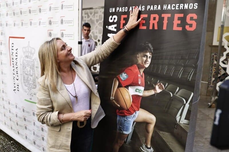 La alcaldesa de Granada ha expuesto que «el Coviran no ha podido elegir mejor imagen de la campaña que nuestra campeona olímpica de marcha María Pérez, un ejemplo de superación que va a marcar la senda del regreso del equipo nazarí a la Liga Endesa».