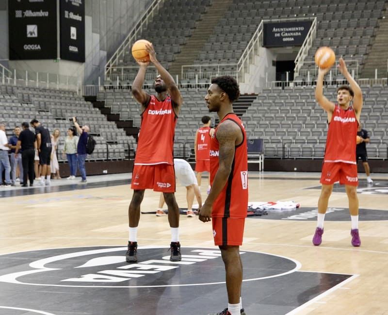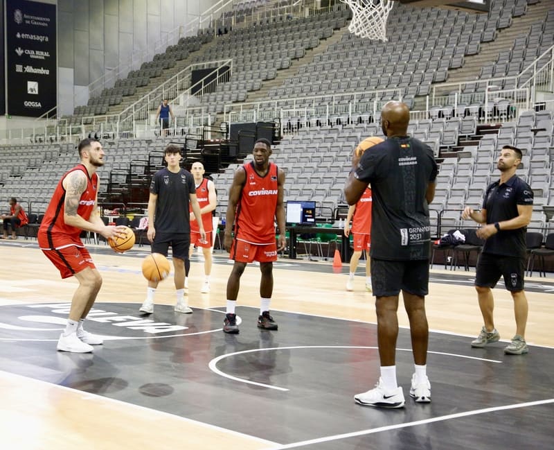 El Coviran Granada ha pisado por primera vez el parqué del Palacio de Deportes durante esta mañana. Los rojinegros se han estrenado a las órdenes de Ramón Díaz, que ha dirigido su primera sesión en su nueva casa tras los reconocimientos médicos realizados el pasado lunes, las pruebas físicas del martes y la acción realizada este martes por el club en la Cooperativa La Palma.