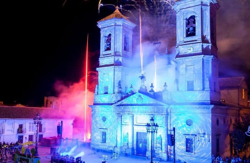 Este año, el inicio de las fiestas, según el Ayuntamiento, «sufrirá un cambio radical, rompiendo la temática de todos los años, y haciendo un espectáculo audiovisual completamente nuevo, una proyección de videomapping sobre la facha de la iglesia que jugará con la historia y belleza de Santa Fe, para sorprender a todos los espectadores».