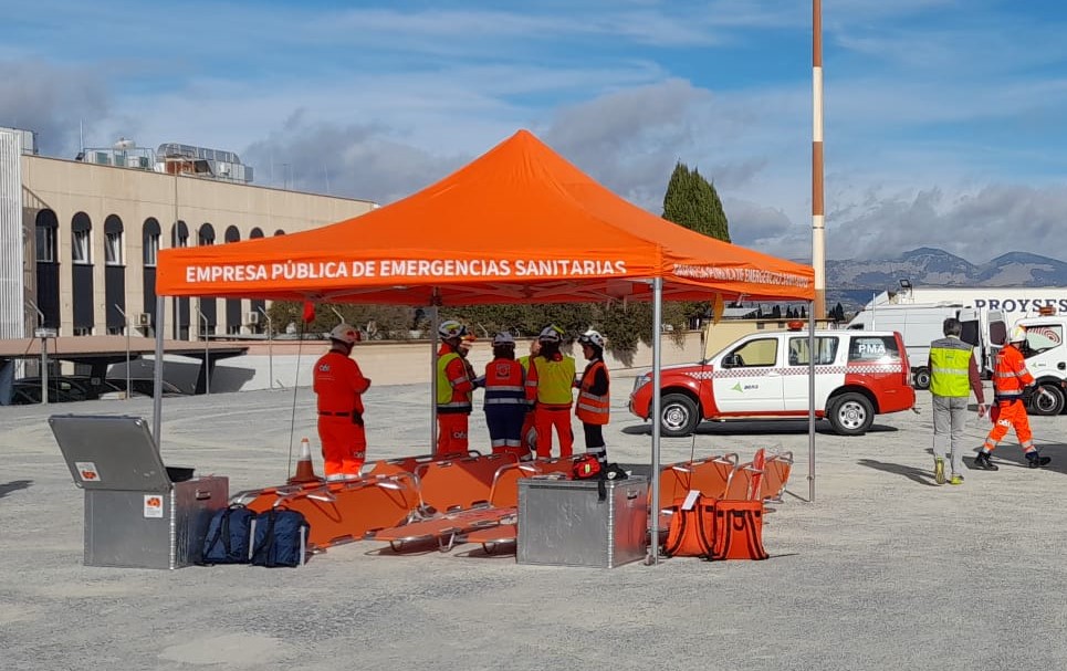 Durante el ejercicio se ha instalado un Puesto de Mando Avanzado (PMA) desde donde se ha coordinado toda la emergencia. Además, también se ha desplegado un Puesto Sanitario Avanzado donde se ha realizado el triaje con las primeras víctimas rescatadas y la gestión de traslados al centro hospitalario de referencia. En la emergencia se ha emulado la existencia de 8 heridos graves, 4 menos graves pero que han requerido asistencia y 4 leves atendidos in situ.
