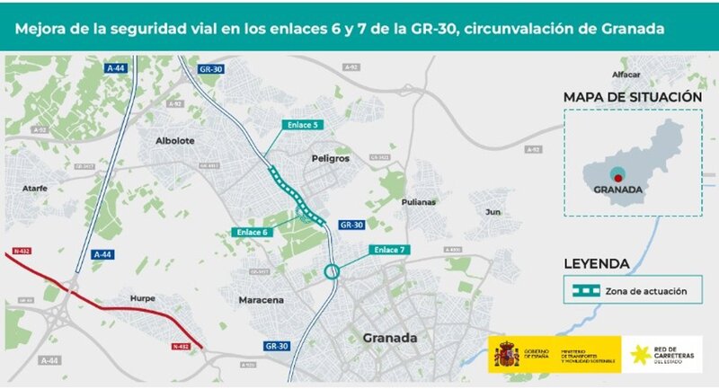El tramo objeto de mejora sobre el que se va a actuar discurre por los términos municipales de Maracena, Peligros, Pulianas y Granada. El proyecto incluye entre las actuaciones un nuevo carril de trenzado en la calzada derecha de la GR-30, sentido Motril, entre los enlaces 5 y 6.