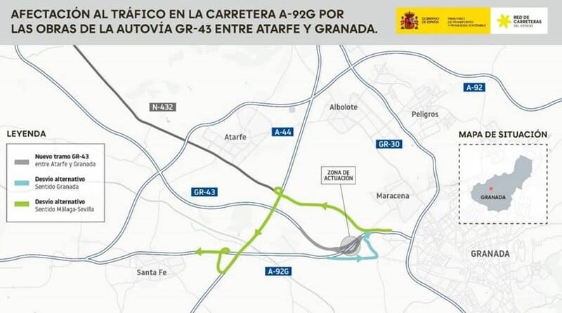 El Ministerio de Transportes y Movilidad Sostenible está ejecutando las obras de construcción de la autovía GR-43, en el tramo Atarfe-Granada, dentro del término municipal de la capital granadina. Se trata de unos trabajos que cuentan con un presupuesto vigente de 15 millones de euros (IVA incluido).