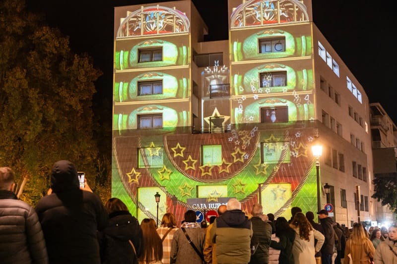 Últimos días para disfrutar del videomapping navideño de Fundación Caja Rural Granada que se proyecta a diario en la fachada del edificio Zaida para felicitar las Fiestas a granadinos y visitantes.